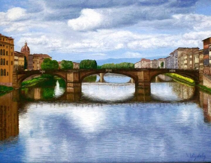 Die Ränder sind auch bemalt, so kann das Bild auch ohne Rahmen aufgehängt werden. Das Bild ist mit feinster Künstlerfarbe auf Leinen-Keilrahmen gemalt.