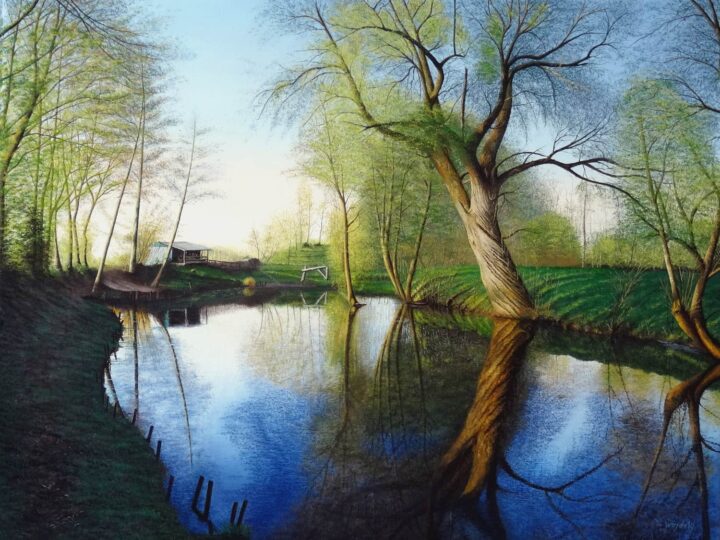 Die Ränder sind auch bemalt, so kann das Bild auch ohne Rahmen aufgehängt werden. Das Bild ist mit feinster Künstlerfarbe auf Leinen-Keilrahmen gemalt.