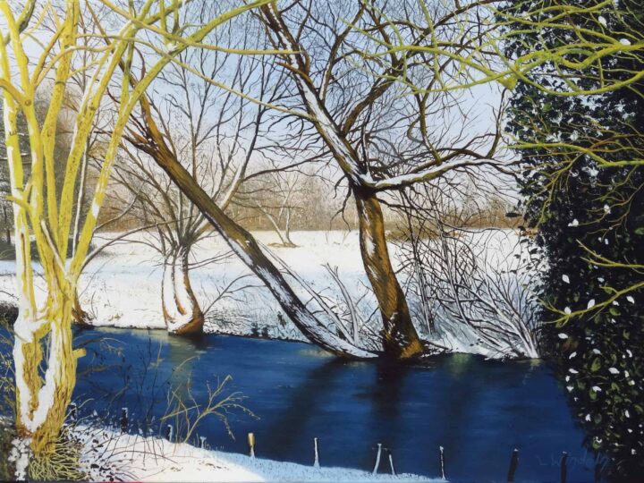 Die Ränder sind auch bemalt, so kann das Bild auch ohne Rahmen aufgehängt werden. Das Bild ist mit feinster Künstlerfarbe auf Leinen-Keilrahmen gemalt.