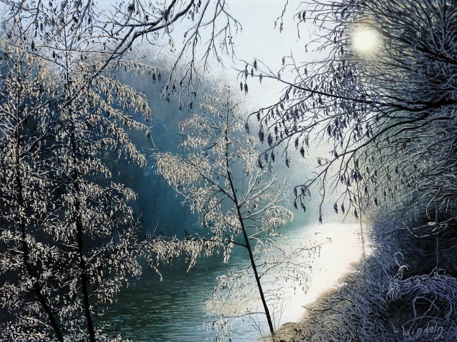Das Bild ist mit feinster Ölfarbe auf Leinen-Keilrahmen gemalt.